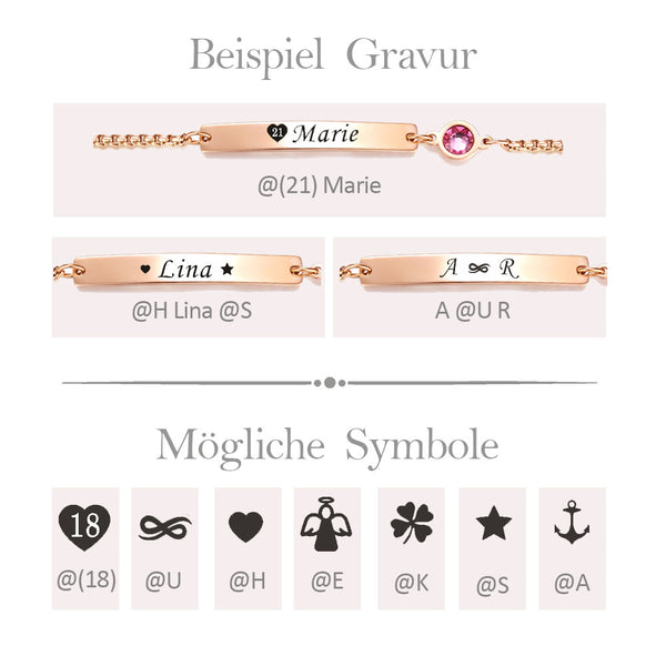When we designed our beautiful bar bracelet "Dora", we wanted to create something unique yet simple enough, to be a versatile gift. Furthermore, as a keepsake, it'd need to be durable. Therefore, we picked stainless steel as the durable main material, kept the look of the bracelet minimal and focused on providing you with options to make it unique!